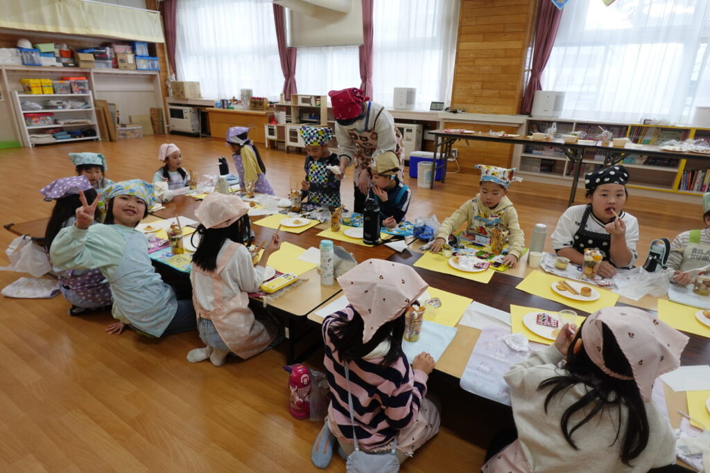 トッピングの材料がたくさんあったので、お腹いっぱいで全部食べ切れない子もいるほどでした。