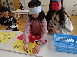 目隠しをして鬼の顔を作るゲームです。