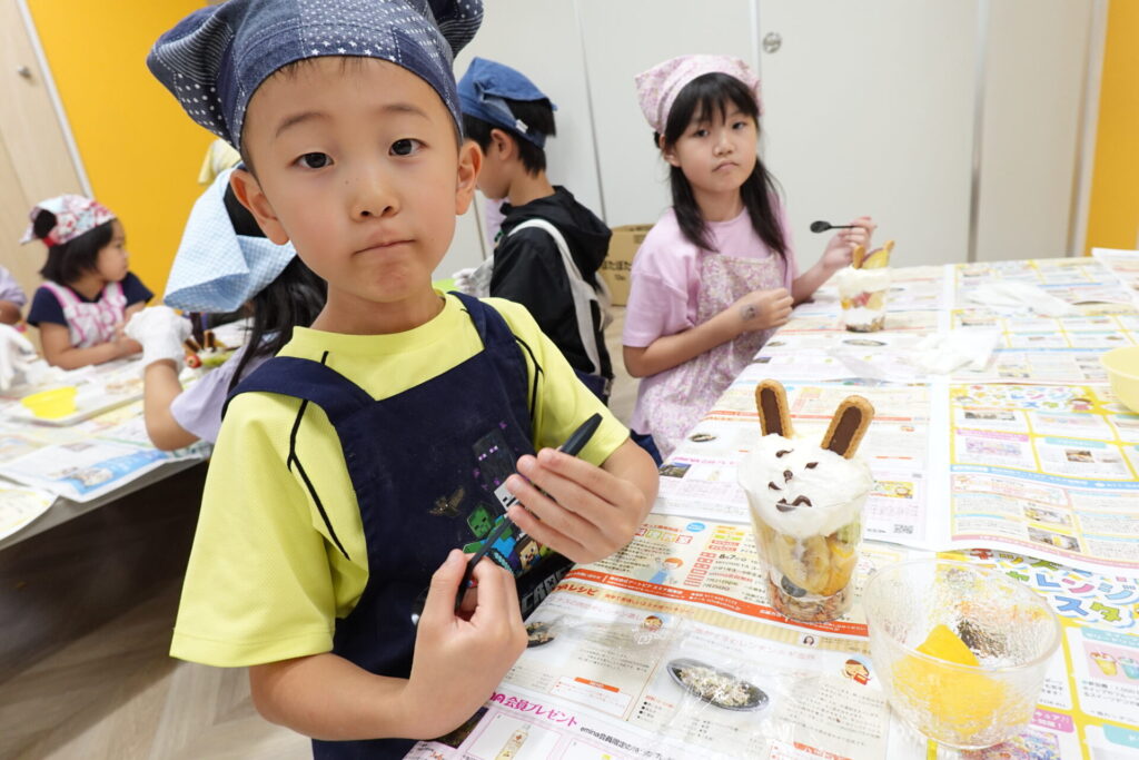 2025年の十五夜は10月6日ですが、光陽児童会館では季節を先取りして、9月18日と19日にお団子入りのお月見パフェを作りました。