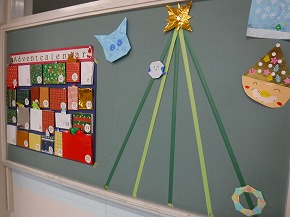 別の掲示板も、クリスマスの飾りでにぎやかです。
