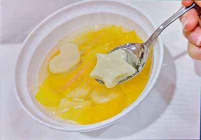 白玉粉と豆腐を混ぜて、冷えても柔らかい白玉を作ります♪