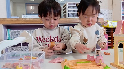 小さなパーツの取り扱いに気を付けて遊んでいます!