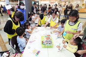 開始後はたくさんの小学生や幼児さん親子が参加し、リーダーたちは道具をわたしてあげたり作り方を教えてあげたりと大忙し!