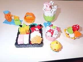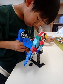 小さなパーツを組み合わせ、動物や食べものといった好きなものを作っています。