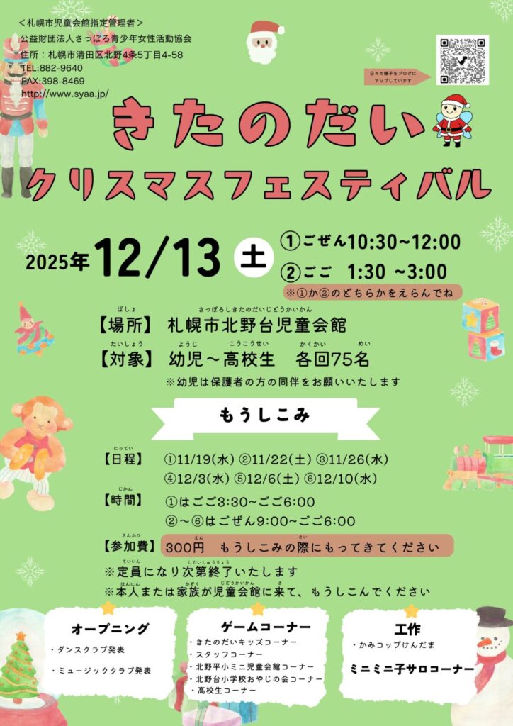 ぜひ「きたのだい☆クリスマスフェスティバル2025」に参加してくださいね♪