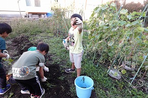9月22日(月)に川北児童会館裏の畑でじゃがいも収穫を行いました!
