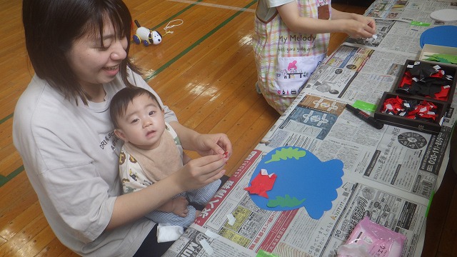 お子さんの手形・足形を魚に見立てた金魚鉢製作を行いました!