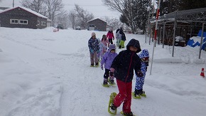学園の新しいスノーシューは履きやすくて脱げにくい!雪山の散策や沢すべり、雪だるまづくりなどなど、雪にまみれて遊びました♪