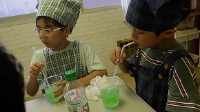 10月は、実験クッキング「つぶつぶメロンソーダ」に挑戦しました!