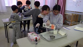 図書や動画を見ながら、冷却現象のしくみを学び、2種類のアイスのもとを作ります。