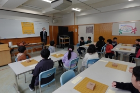 まずは将棋についてのお話をしていただきましたが、2回目ということもあり前回とは違って駒の戦略的な使い方も教えていただき子どもたちは真剣に聞き入っていました。
