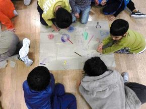 【手稲東小ミニ児童会館】 大きな紙でお絵かきタイム!