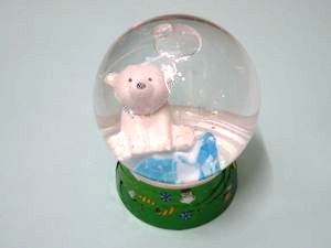 スノードームの容器に注いで、人形を貼りつけたフタをしめたら完成です。