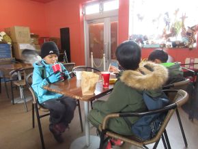 買い物後は、お友達と一緒に楽しく買ったものを食べていました♪