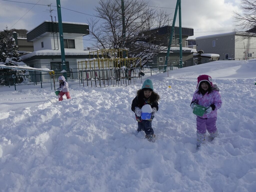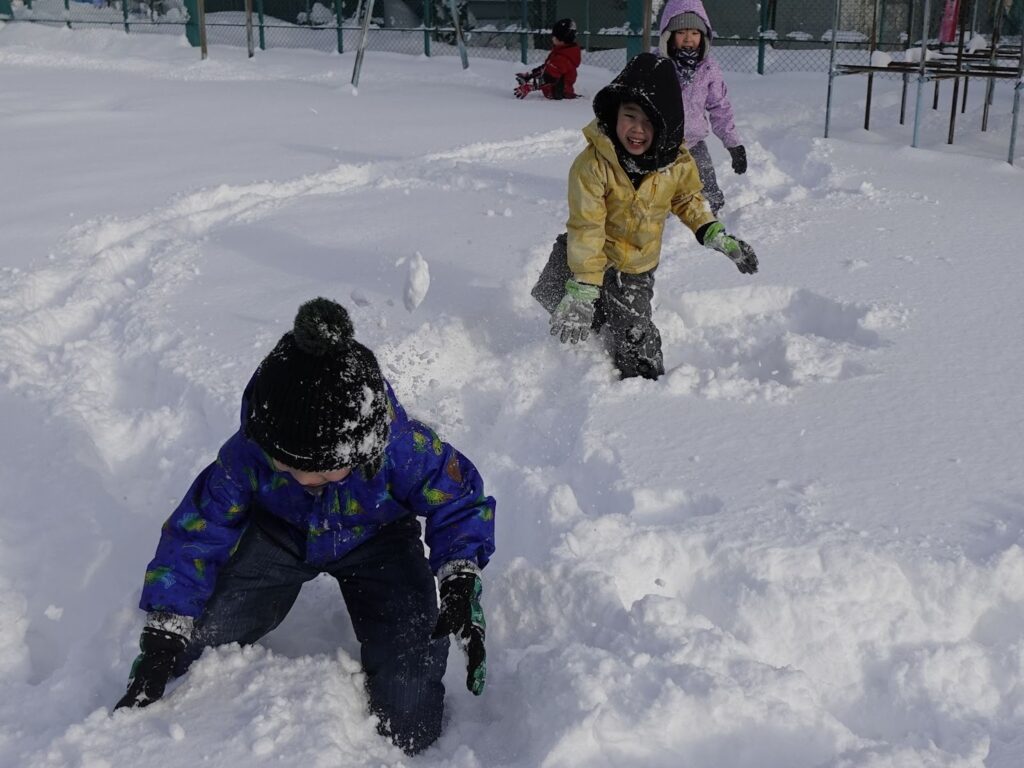 こちらは、ふかふかの雪を見るなり、すぐさま雪玉を作り始めた子どもたちです。