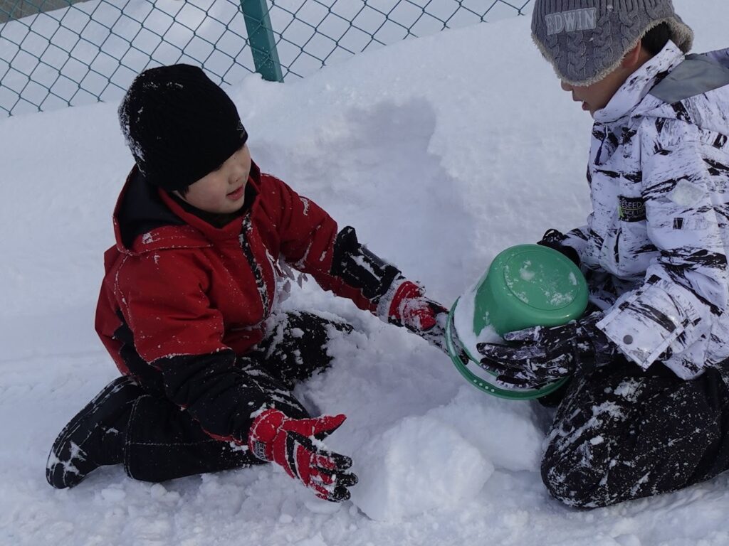 福井野小ミニ児童会館では先日、雪遊びを行いました!