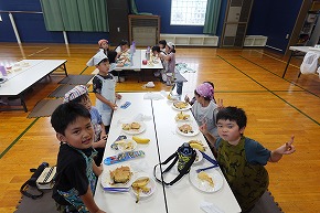 自分で作った大きなホットケーキを食べた参加者は、「おいしかった!」と満腹・満足そうでした!