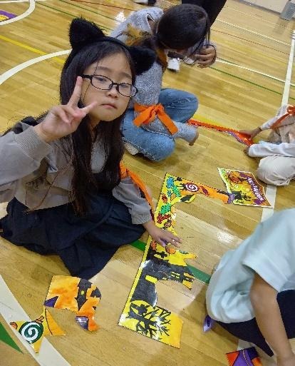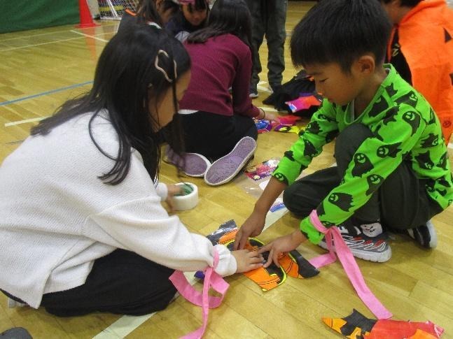 1年生は初めてのハロウィンパーティーで、どんなことをするのか不安だったようですが、高学年のお兄さんお姉さんたちと一緒にゲームに参加してとても面白かったと感想を言っていました!