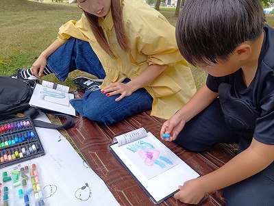 好きな色、気になる色を選んで、自分の指で混ぜることで変化していく色と感情。自然の中で心穏やかに豊かな時間を親子で過ごすことができたのではないでしょうか?