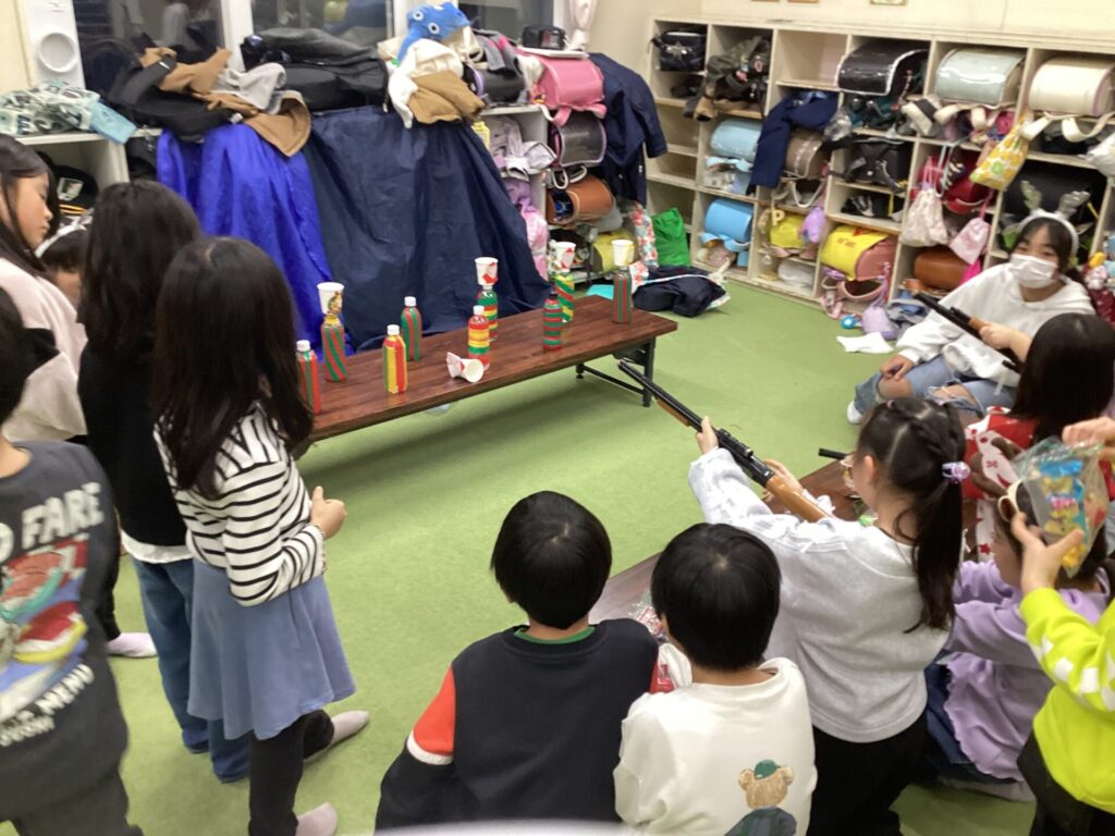 遊びコーナーではお菓子すくいや射的、ボウリングで楽しく遊びました。