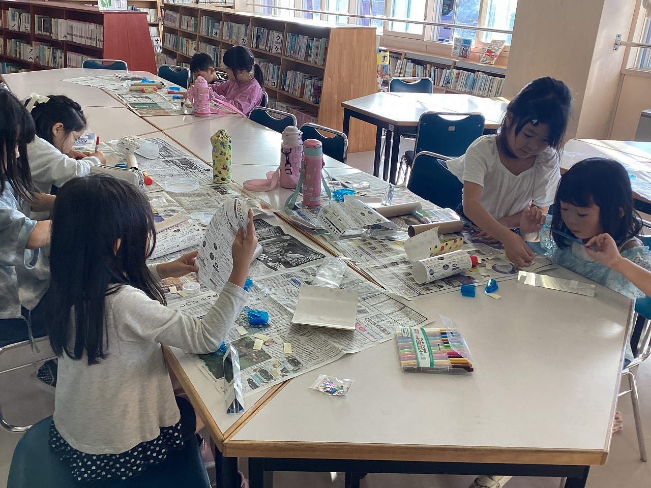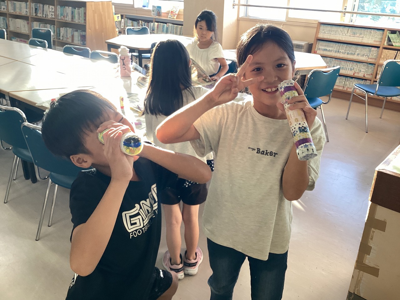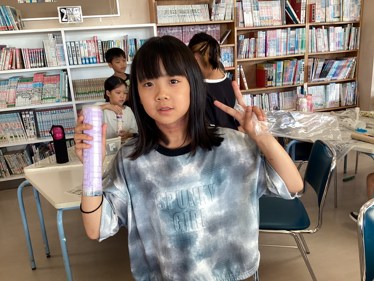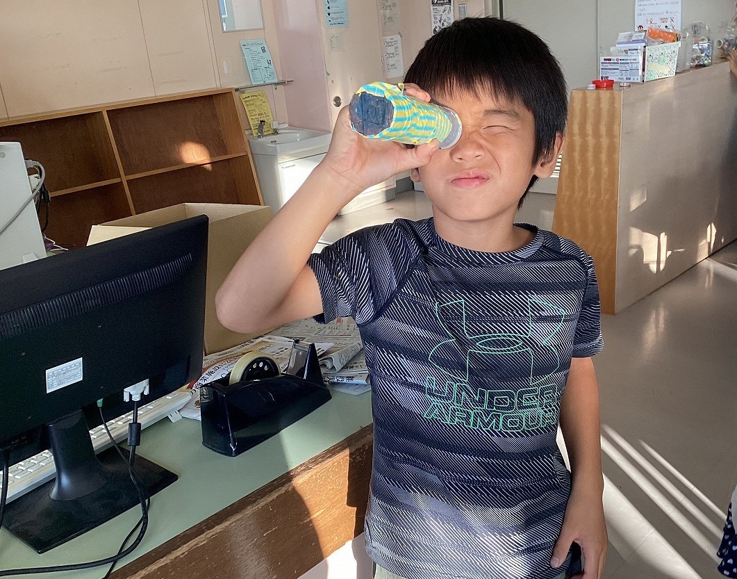 万華鏡の筒に絵やマスキングテープでデコレーションをしました。さらに、スパンコールの量を調整して見方を変えるなど、たくさんのアイディアを出し合いながら自分だけのオリジナル作品を作ることができました!