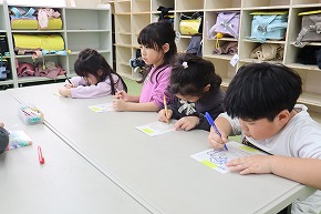 みんな真剣。かわいいプラ板キーホルダーができました。